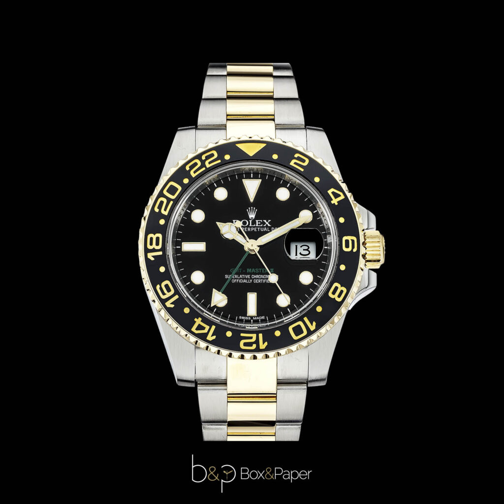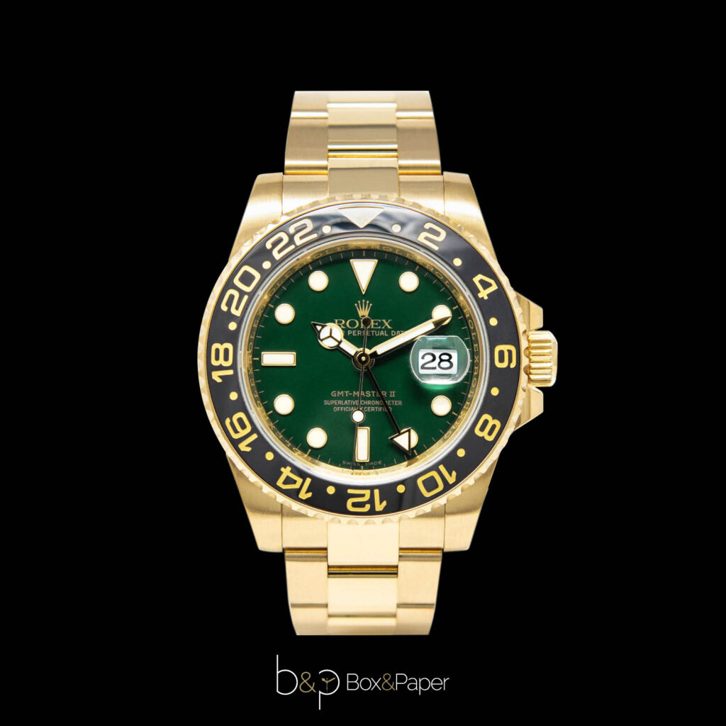 Con questo modello Rolex abbandona le vecchie casse e le sostituisce con una cassa più imponente pur mantenendo i 40 mm di diametro. Per la prima volta viene montata una lunetta girevole delle 24 ore in ceramica e oro giallo. Possiamo trovare due configurazioni per questo modello, la prima presenta un quadrante verde con scritte dorate, la seconda con quadrante nero con scritta Gmt-Master II e sfera delle 24 ore, verde.