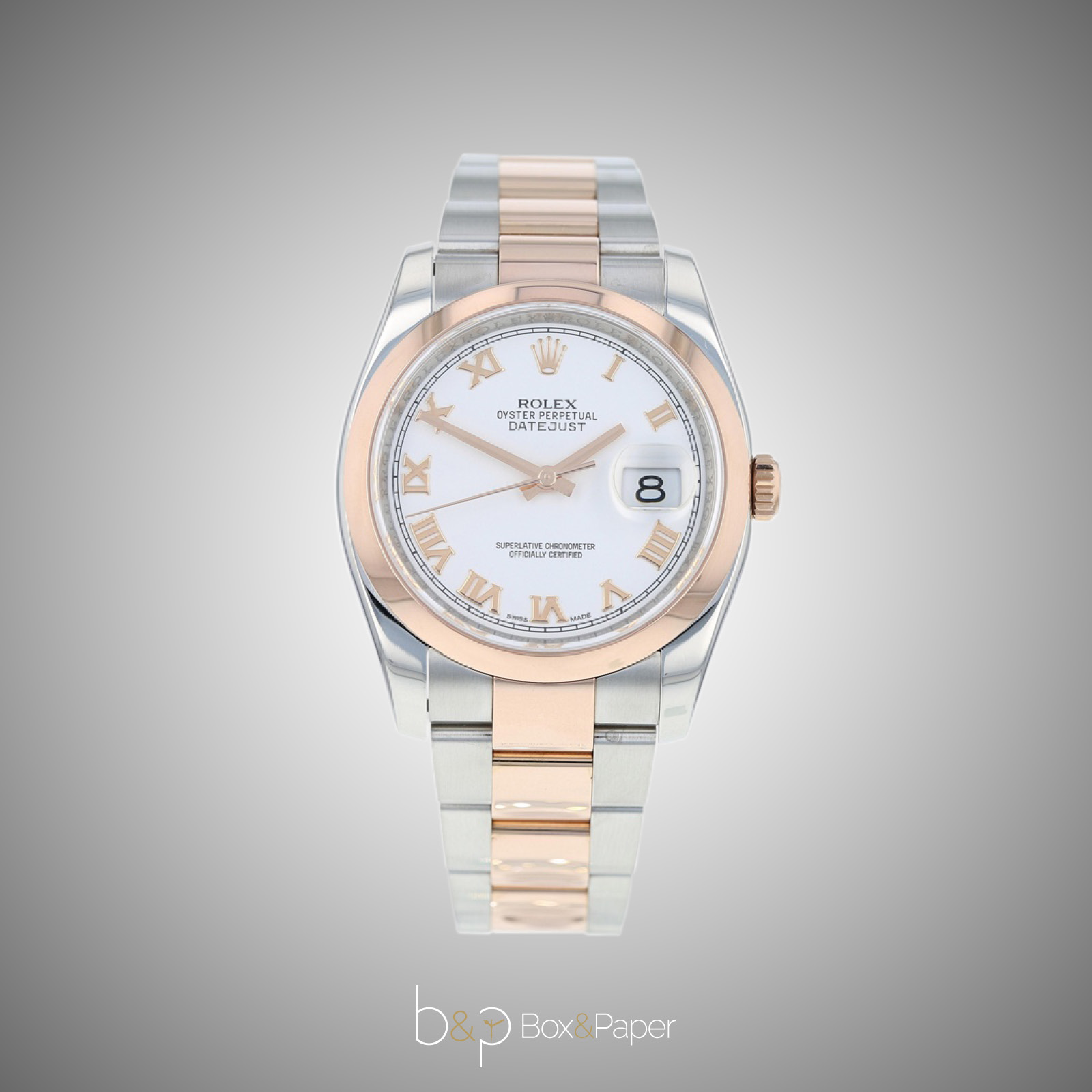 Nel 2005 Rolex presenta a Basilea l’Oyster Perpetual Datejust 116201 in Rolesor rosa con lunetta bombata. Questo orologio poteva essere equipaggiato da un bracciale Jubilee o da un bracciale Oyster. Il quadrante è disponibile in diverse varianti cromatiche. La cassa Oyster è garantita impermeabile all’acqua fino a 100 m di profondità. Porta inciso all’interno del fondello il codice 2080. Il movimento equipaggiato su questa referenza è il calibro 3135.