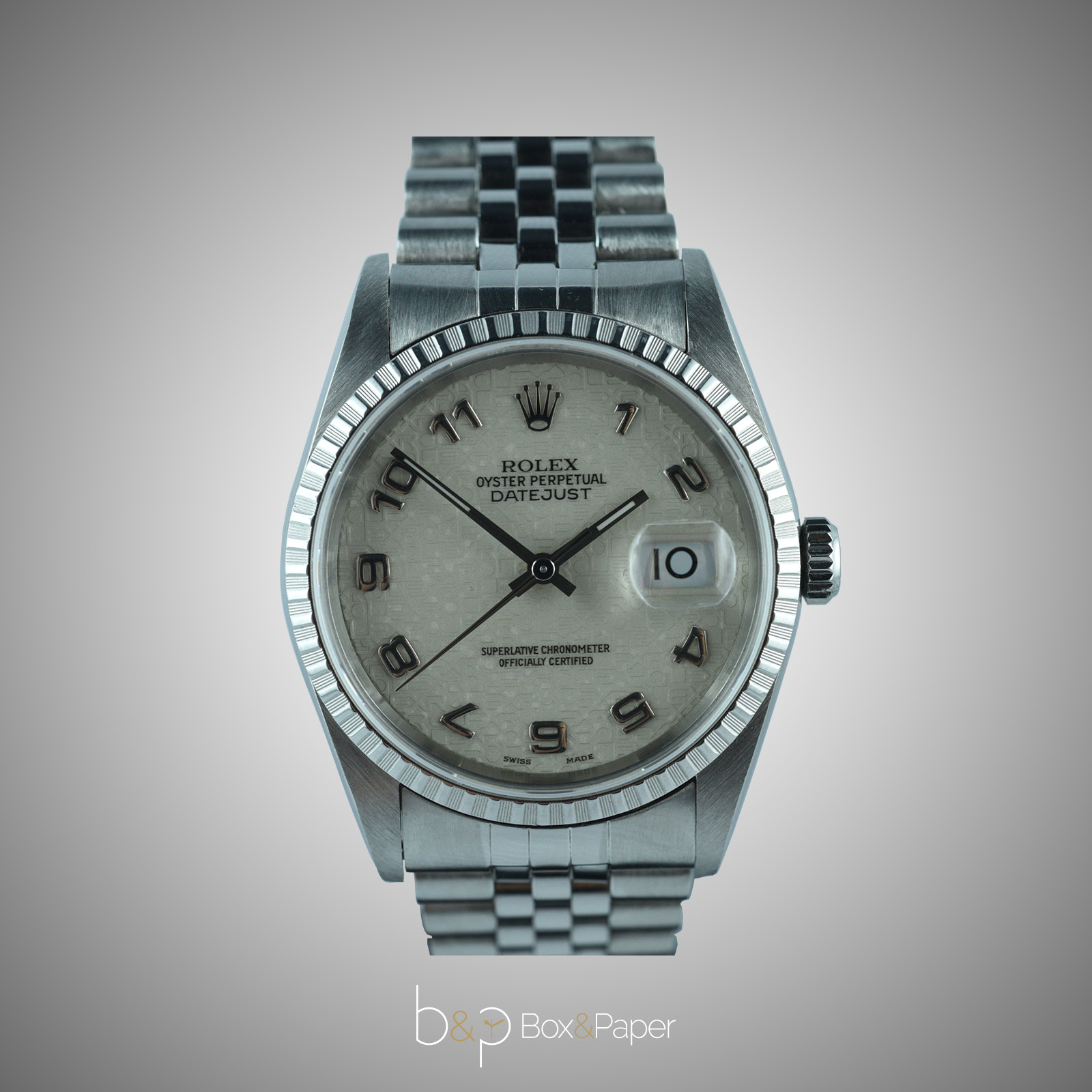 Nel 1989 viene presentato il nuovo Oyster Perpetual Datejust con referenza 16220 in acciaio con lunetta zigrinata in acciaio. Può essere equipaggiato da un bracciale Oyster ref.78360 o Jubilee ref.62510. La cassa Oyster di 36mm di diametro è garantita impermeabile all’acqua fino a 100 m di profondità. Questa referenza porta inciso all’interno del fondello la referenza 16200 o il codice a 4 cifre 2080. Monta il calibro 3135.