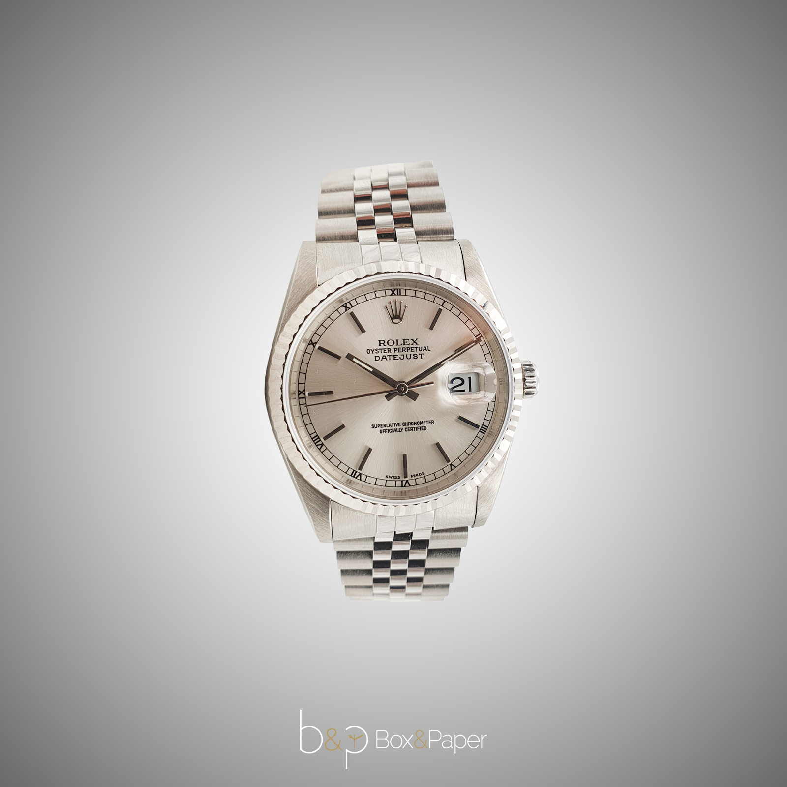 Nel 1989 viene presentato il nuovo Oyster Perpetual Datejust con referenza 16234 in acciaio e con lunetta zigrinata in oro bianco. Può essere equipaggiato da un bracciale Oyster con ref.78360 o Jubilee ref. 62510. La cassa Oyster è garantita impermeabile all’acqua fino a 100 m di profondità. Questa referenza porta punzonato all’interno del fondello la referenza 16200 o il codice a 4 cifre 2080. Monta il calibro 3135.