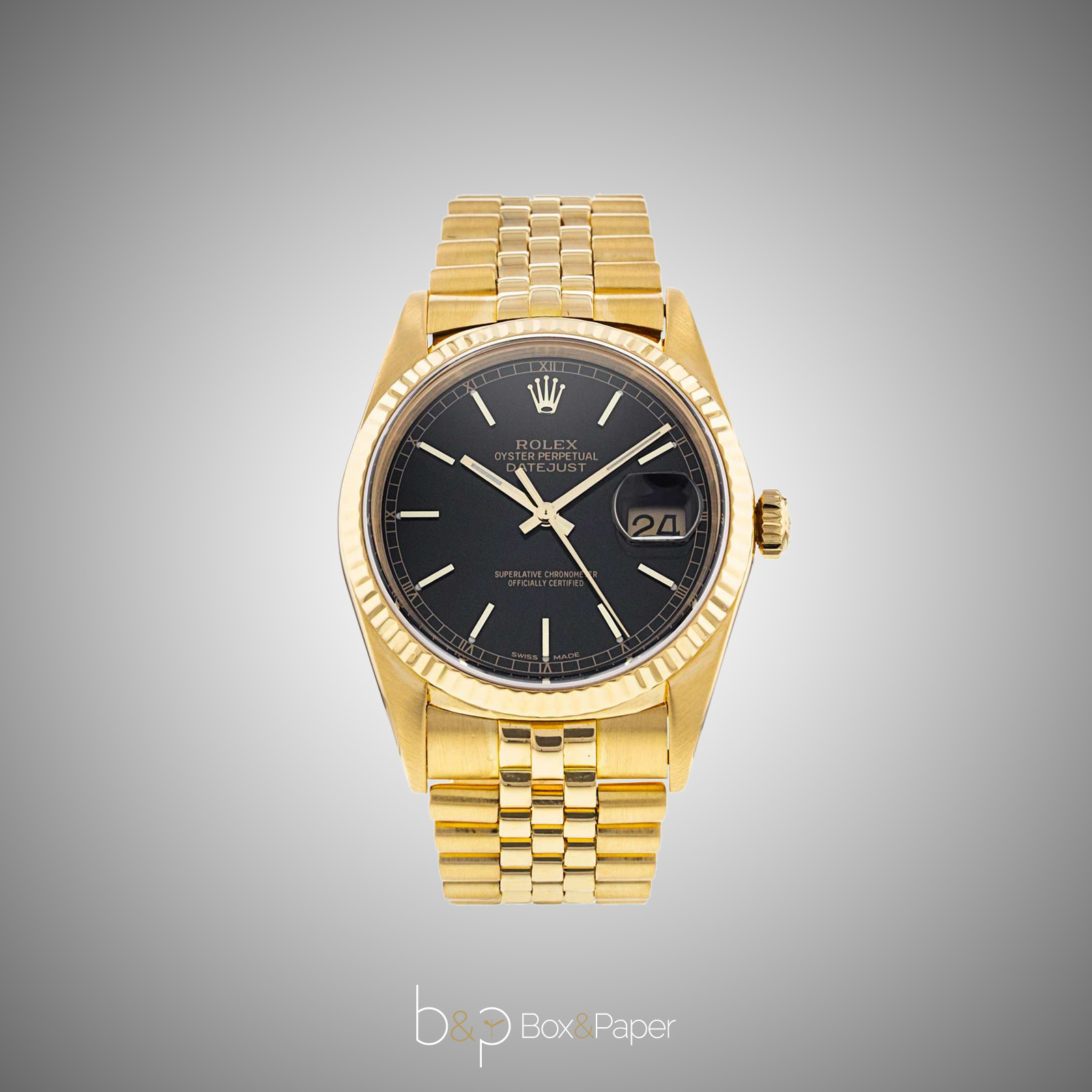 Nel 1989 Rolex lancia sul mercato il nuovo Oyster Perpetual Datejust con referenza 16238 in oro giallo 18 ct. dotato di lunetta zigrinata. Può essere equipaggiato da un bracciale Oyster, Jubilee o Super Jubilee. La cassa Oyster è garantita impermeabile all’acqua fino a 100m di profondità. Questa referenza monta il calibro 3135 e porta punzonato all’interno del fondello la referenza 16208.