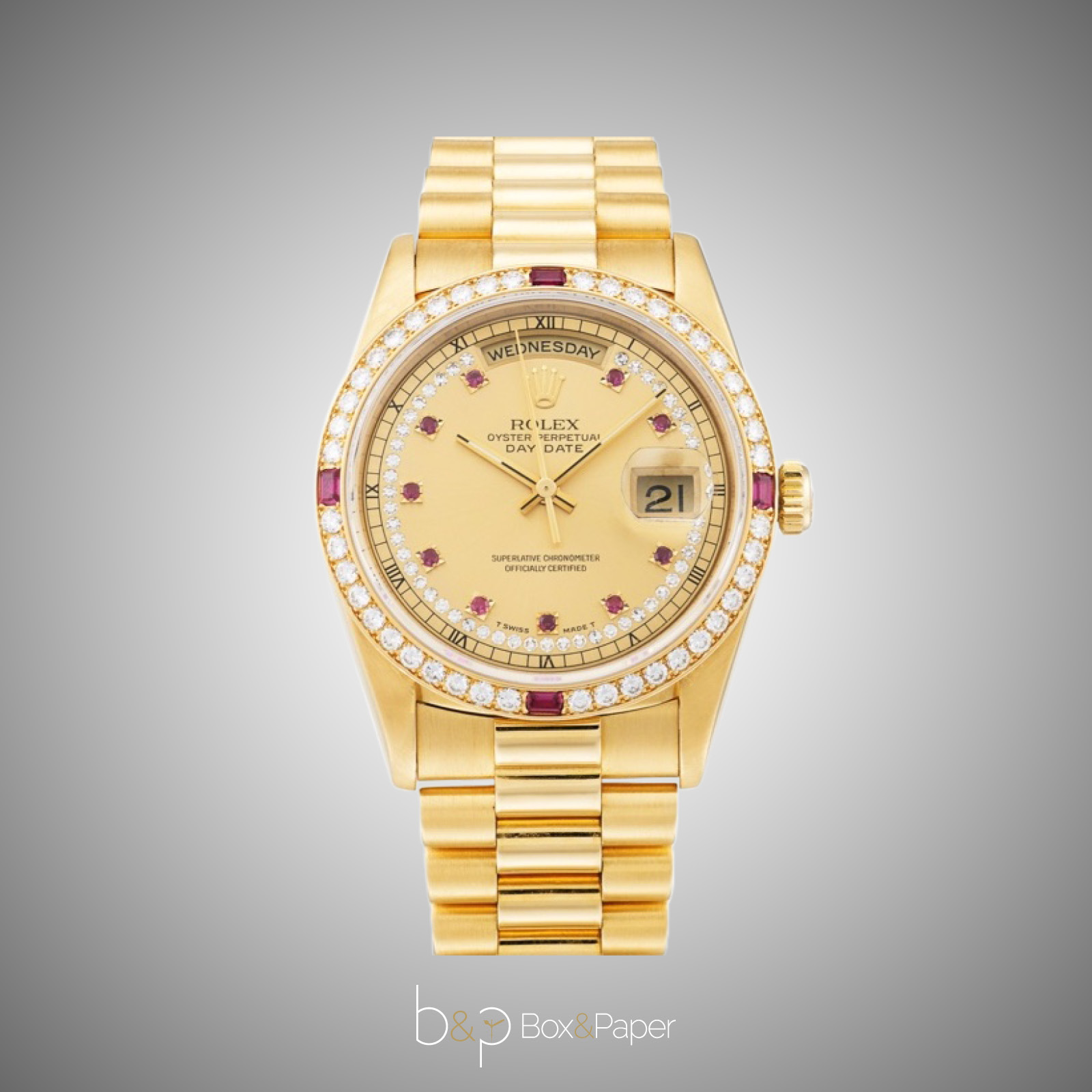 A partire dal 1989 Rolex lancia sul mercato nuove referenze Day-Date. Tra queste, la referenza 18378 in oro giallo con lunetta con 44 brillanti e 4 rubini baguettes. È accompagnato da un bracciale President con maglie centrali impreziosite da brillanti. A partire dal 1996 poteva essere equipaggiato anche bracciale Super President. Garantito impermeabile fino a 100 m, questo Day-Date ha ottenuto il COSC. Monta il calibro 3155.