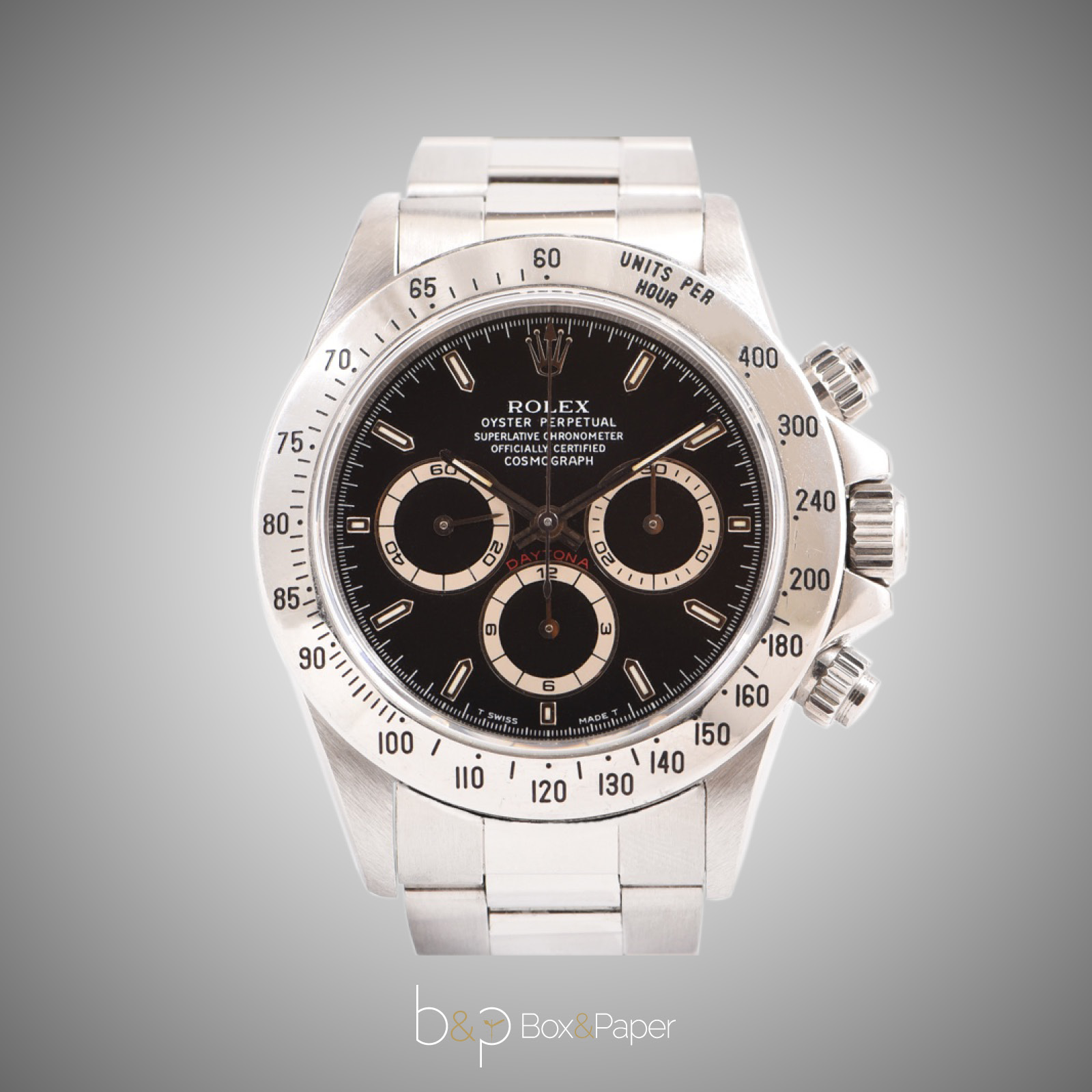 Nel 1988 Rolex interrompe la produzione dei Cosmograph Daytona con carica manuale, sostituendola con le prime referenze a calibro automatico, dotate di vetro zaffiro. La referenza 16520 è realizzata solamente in acciaio e monta il nuovo calibro 4030 modificato da Rolex sulla base di un calibro Zenith 400. Porta inciso all’interno del fondello 16500 o 2100. Ne esistono diverse versioni. Potevano variare i quadranti e le scale tachimetriche. All’inizio della produzione il nuovo Daytona montava un quadrante 4 scritte e una ghiera tachimetrica che indicava fino a 200 “units per hour”. Successivamente all’interno del quadrante le scritte divennero 5, con la quinta riga staccata dalla quarta, questo quadrante venne denominato “floating”. In questi anni venne commercializzata anche la rarissima versione con dial “Porcellana” che si differenziava per le sue scritte tridimensionali del quadrante. Tra il 1994 e il 1996, a causa di un difetto nella vernice del quadrante nero, la pista dei contatori da chiara diventava marrone scura e ad oggi questo quadrante, denominato “Patrizzi” è molto ricercato dai collezionisti mondiali. Dall’inizio della sua produzione e fino al 1998, i quadranti erano illuminati dal Trizio, dal 1999 in poi troveremo dei quadranti illuminati dal nuovo materiale Luminova e nei pochi pezzi prodotti dopo il 2000, il materiale diventerà il Superluminova.
