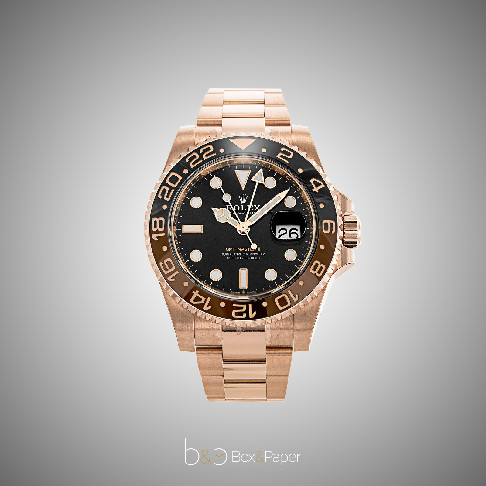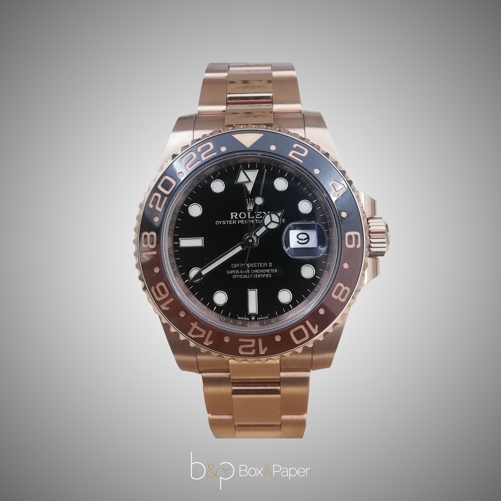 Viene presentato da Rolex a BaselWorld 2018. E’ prodotto in oro rosa 18 ct (Everose) con lunetta in ceramica nera e marrone. Il quadrante è nero ma presenta la scritta Gmt-Master II dello stesso marrone della lunetta. Il bracciale anche esso in oro rosa 18carati è dotato di chiusura OysterLock e del sistema di allungamento rapido EasyLink che permette di regolare la lunghezza del bracciale di circa 5mm. E’ dotato di movimento Rolex 3285.
