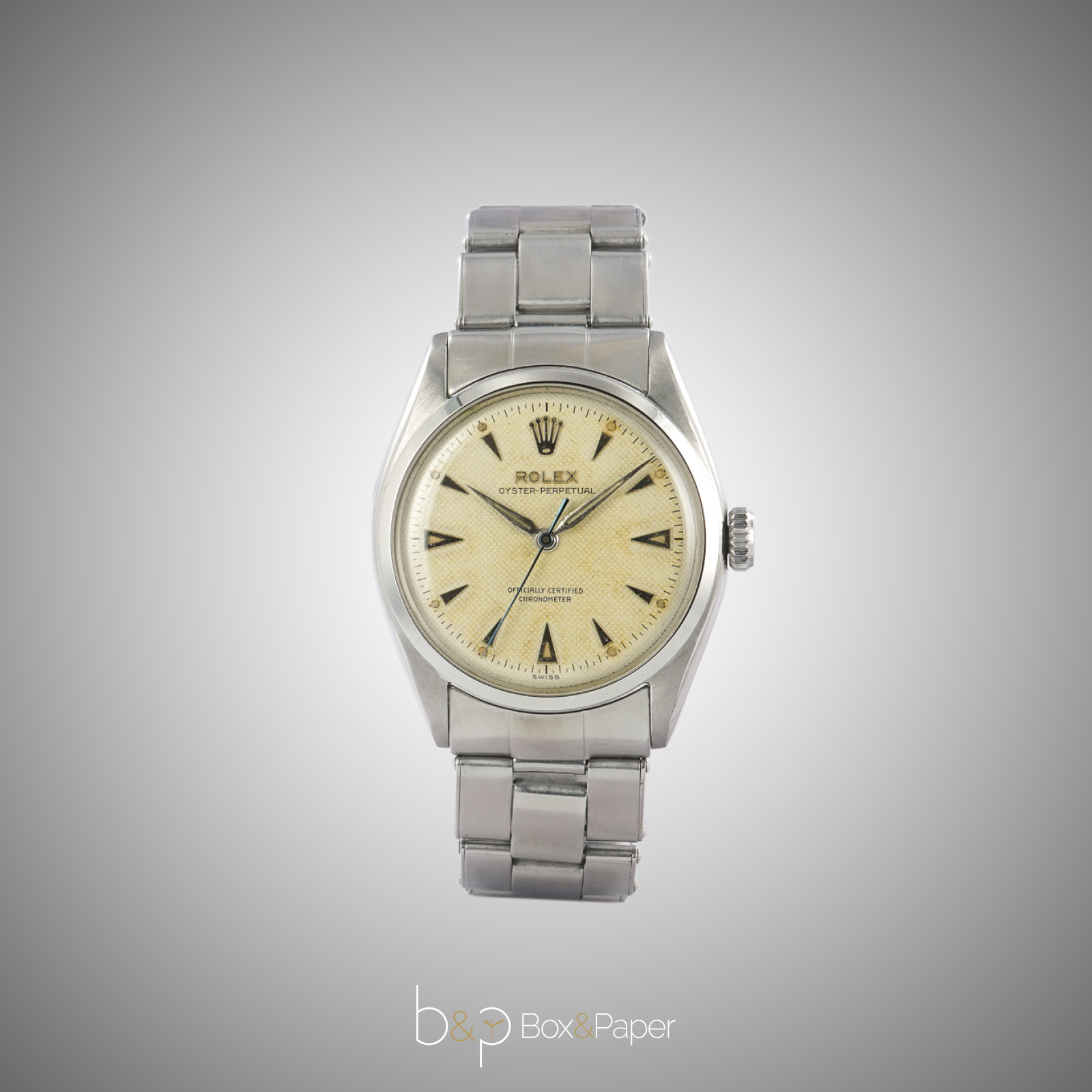 Il Rolex 6084 viene presentato anch’esso negli anni 50’, fu realizzato in acciaio, acciaio e oro e oro. Monta il calibro A.260 e può montare un quadrante nero con indici o bianco con indici. È equipaggiato nella versione acciaio da un bracciale Oyster. Ha una cassa Oyster con corona Twinlock, all’interno del fondello porta incisa la propria referenza. Molto rara la versione con la lancetta dei secondi in rosso.
