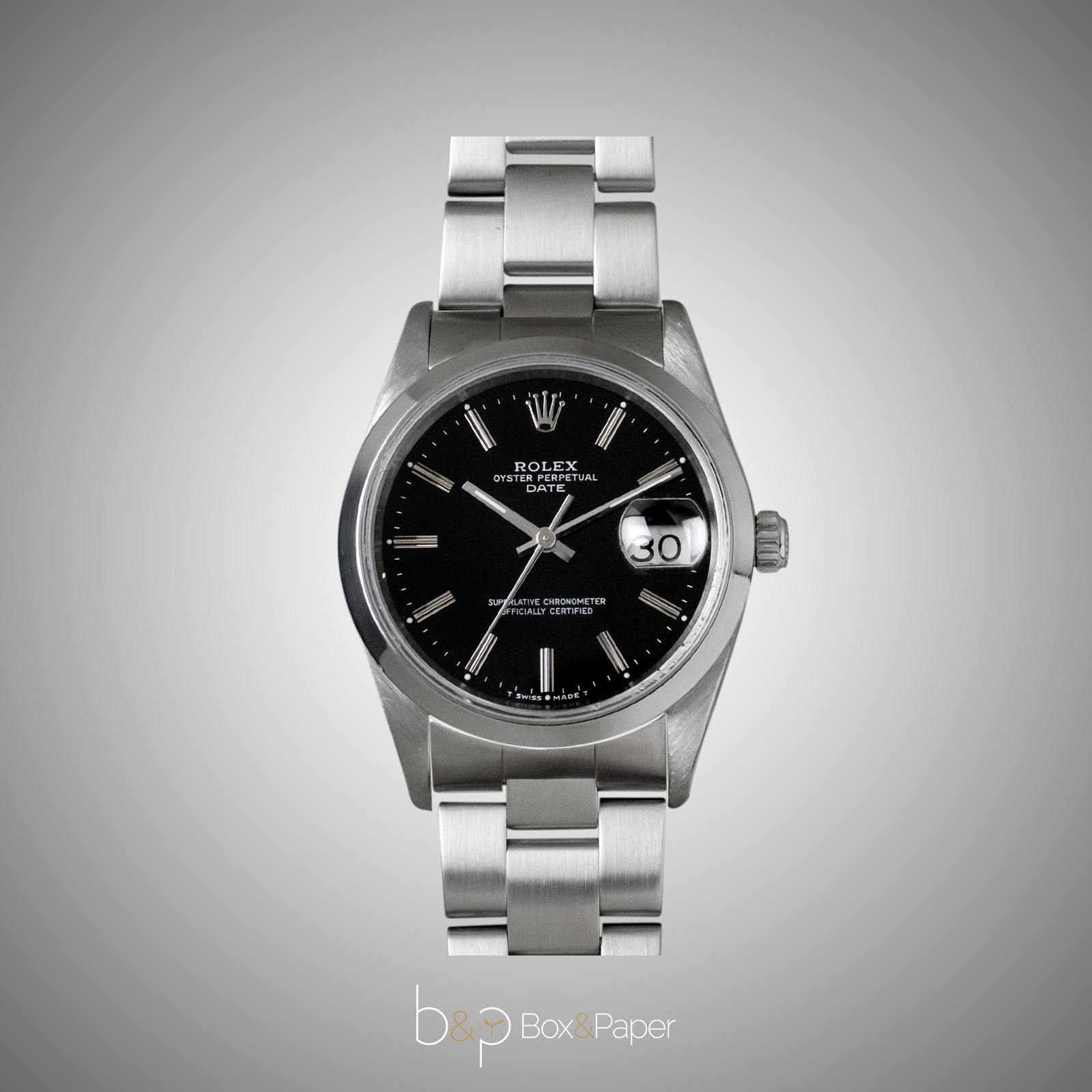 Presentato nel 1989 da Rolex in concomitanza della presentazione del nuovo calibro 3135, il nuovo Oyster Perpetual Date 15200 è realizzato in acciaio con una cassa da 34 mm e presenta una lunetta liscia. Può essere equipaggiato da un bracciale Oyster ref. 78350. All’interno del fondello porta inciso il codice 15200 o 2120.