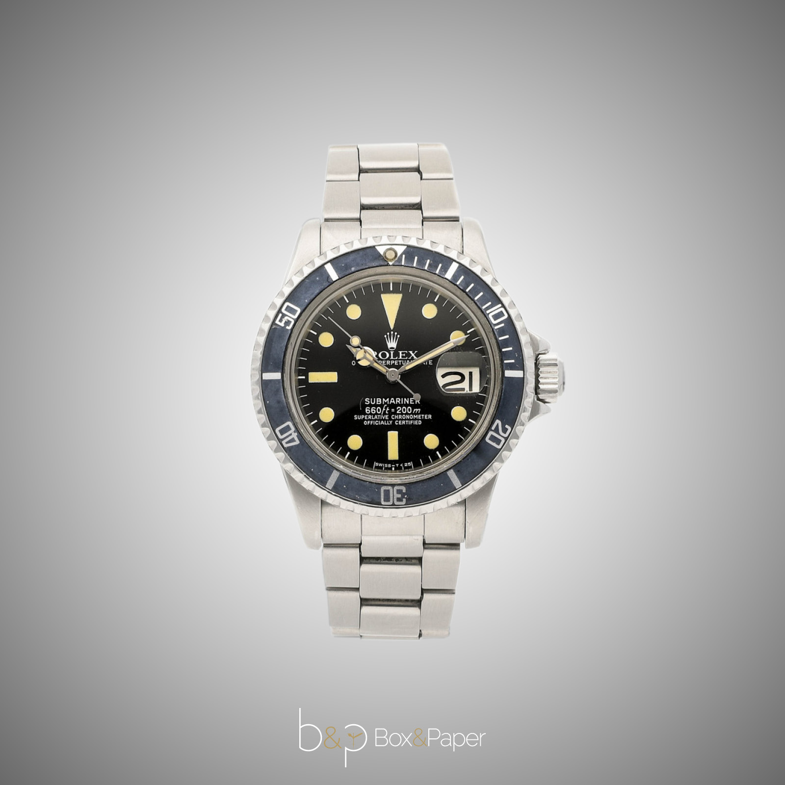Con la referenza 1680 nel 1967 Rolex introduce il primo Submariner con datario, garantito impermeabile fino a 200 m. La prima grafica di questo orologio era con scritte bianche ad eccezione del nome Submariner colorato di rosso. Era realizzato in acciaio con due tipi di bracciali : Ref. 7206 Flush-fit o Ref. 9315 Fliplock ripiegato e poi verrà aggiornato dalla metà degli anni 70’ con bracciale Oyster Fliplock Ref. 93150. Di questa referenza è possibile trovare diversi tipi di quadranti definiti dai collezionisti e operatori del settore “Mark”. I più rari sono quelli definiti “tropical” per via del loro viraggio verso il marrone.