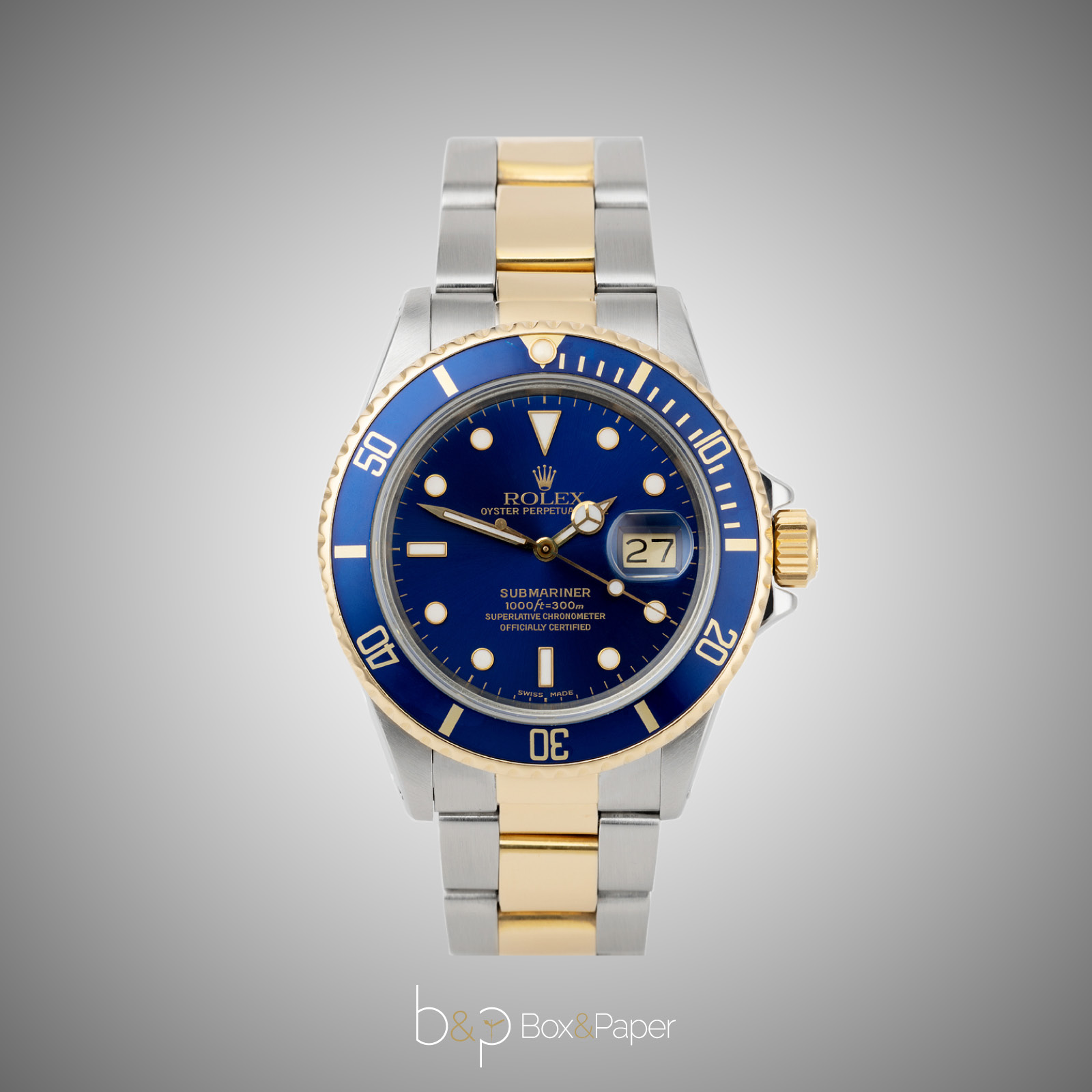 Nel 1983 la Rolex presenta un nuovo Submariner Date in acciaio e oro, la referenza 16803. Questo orologio come il 16800 monta un calibro 3035 ed è equipaggiato da un bracciale anch’esso in acciaio e oro con Ref. 93153. Come per tutti gli orologi subacquei Rolex, è dotato di lunetta girevole unidirezionale. L’impermeabilità è garantita fino a 300 m. Da catalogo è disponibile in due uniche varianti: quadrante e lunetta nera, quadrante e lunetta blu. Ne esiste una versione con quadrante blu virato al viola per via di un errore nella verniciatura.